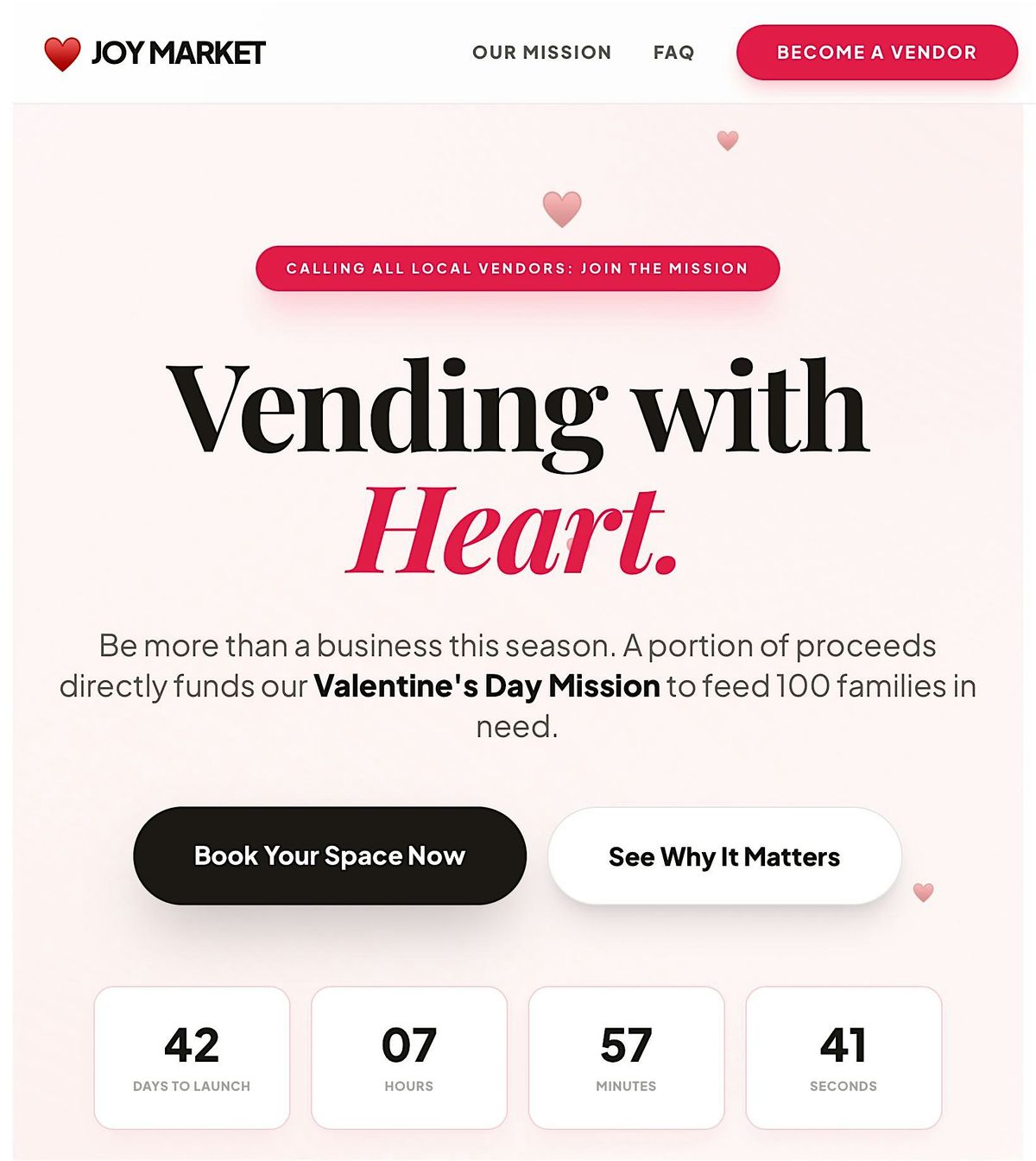 The Joy Market offers an affordable, supportive space to grow your brand, connect with customers, and gain visibility. Vendors can also advertise in our storefront window for added exposure.