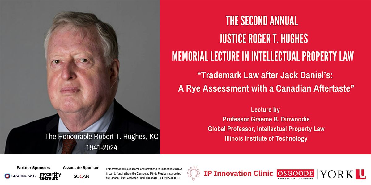 On behalf of Susan Peacock and the family of the late Honourable Justice Roger T. Hughes, KC, we are pleased to invite you to the second annual Justice Roger T. Hughes Memorial Lecture in Intellectual Property Law.