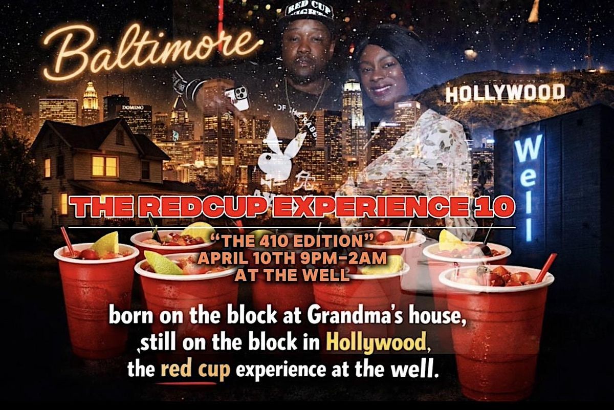 On April 10th we are having a special version of The Red Cup Experience. For those that don't know The Red Cup Experience was started in Baltimore City on May 10th 2025, created by Red Cup Reggie who was also born in Baltimore. Long before the area code 443 was added to the city, most residents in the city had the 410 area code. April 10th is 410 on the calaneder so, for this Red Cup Experience Reggie is partnering with "KD" of Divine Promotions another Baltimore Native and, we are bringing the vibes of Baltimore to Hollywood. With a Baltimore drink menu, Baltimore DJs, Baltimore Dancers, and a few Baltimore music artist as well throughout the night.