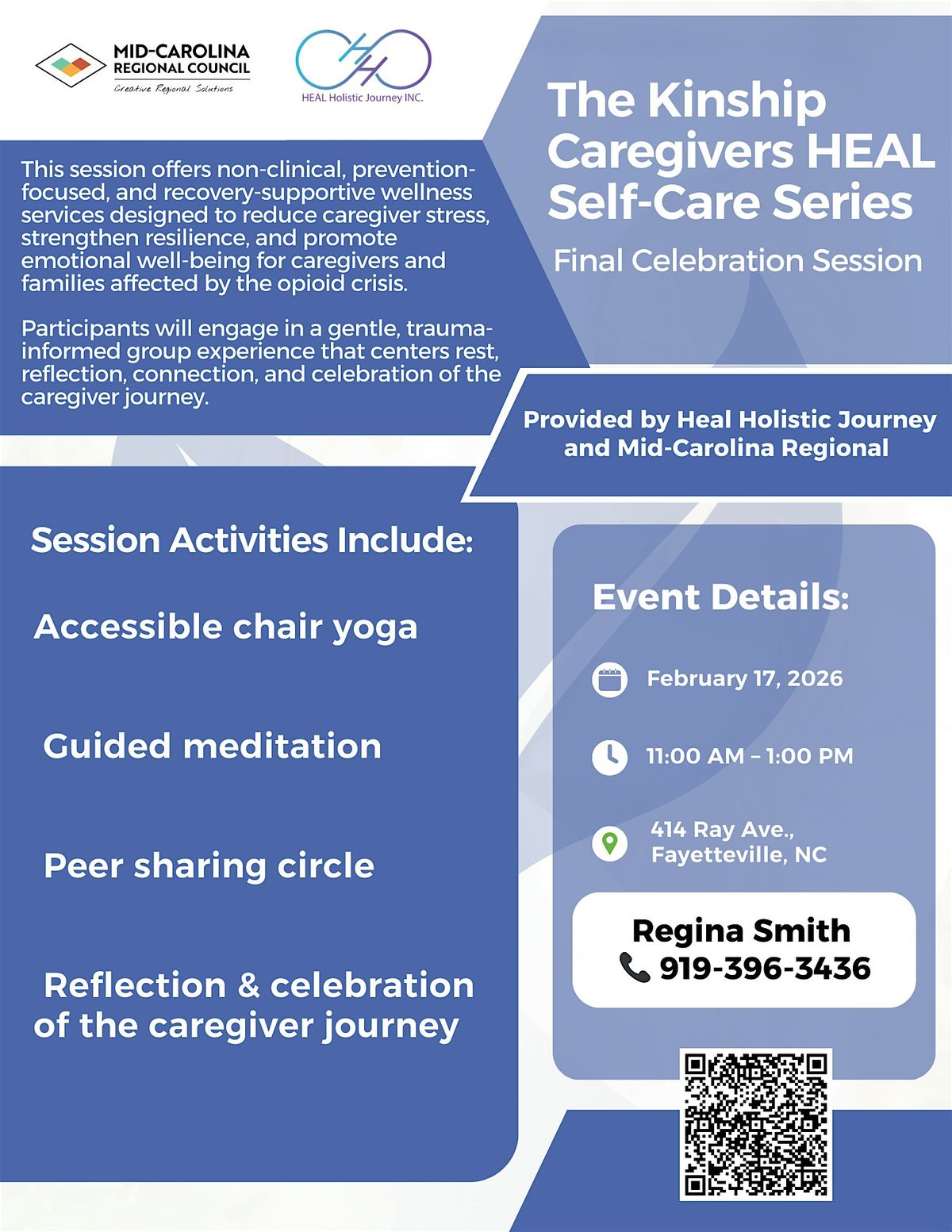 The Kinship Caregivers HEAL Self-Care Series – Final Celebration Session marks the conclusion of a six-month, community-based wellness initiative created to support kinship caregivers raising children impacted by opioid and substance misuse.