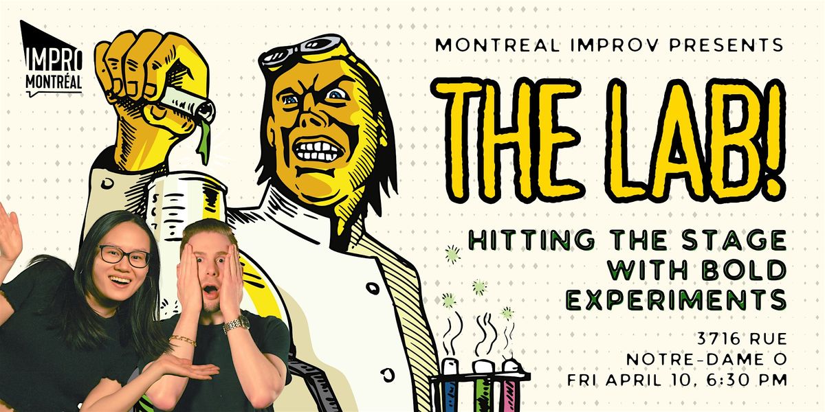 Step into The Lab, where fresh talent from the Montreal Improv school takes the stage for an hour of improvised comedy! This show features emerging performers experimenting with their craft, bringing new and exciting energy to each scene.