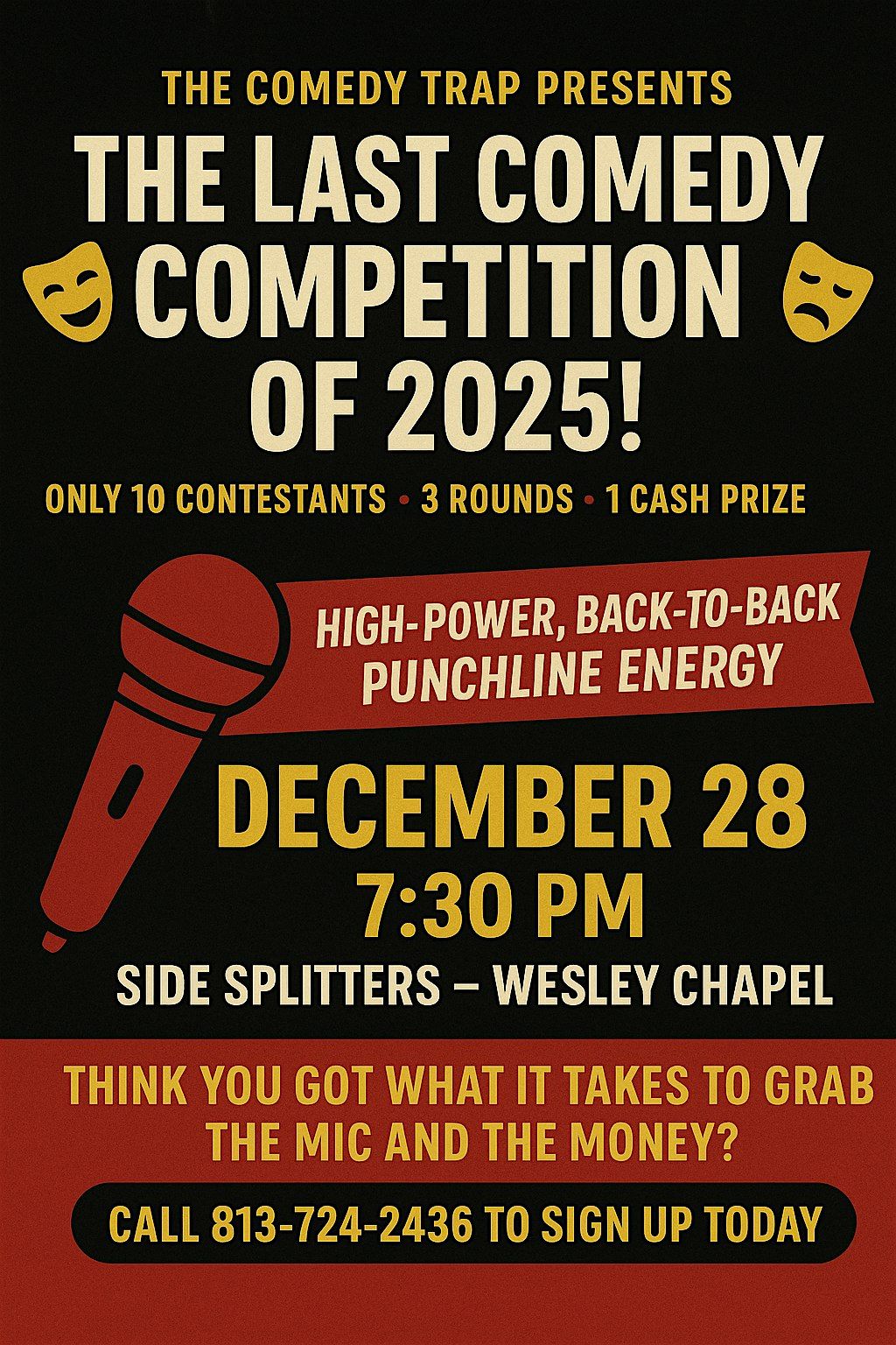 The Comedy Trap presents The Last Comedy Competition of 2025 — a high-energy, no-nonsense stand-up showdown featuring only 10 comedians, 3 competitive rounds, and 1 cash prize winner.