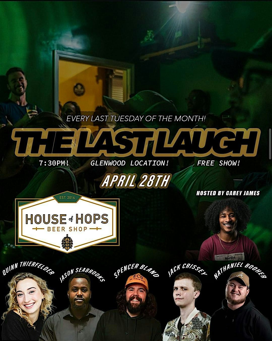 Get ready for a night full of hilarious jokes and good vibes at The Last Laugh! Join us in person at the cozy backroom of House of Hops for an evening packed with laughs, great company, and tasty brews. Whether you're here to unwind after a long day or just love a good comedy show, this is the place to be. Don’t miss out on the fun — bring your friends and come enjoy some side-splitting humor in a relaxed setting!