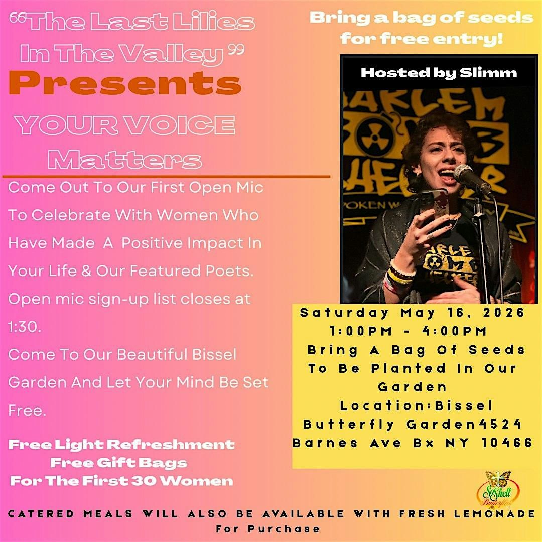 Presented to you by Your Voices Matter, hosted by Slimm, we will be coming together the weekend after mothers day to celebrate the mothers in our community. Come out, support, & sign up to perform on this amazing evening.