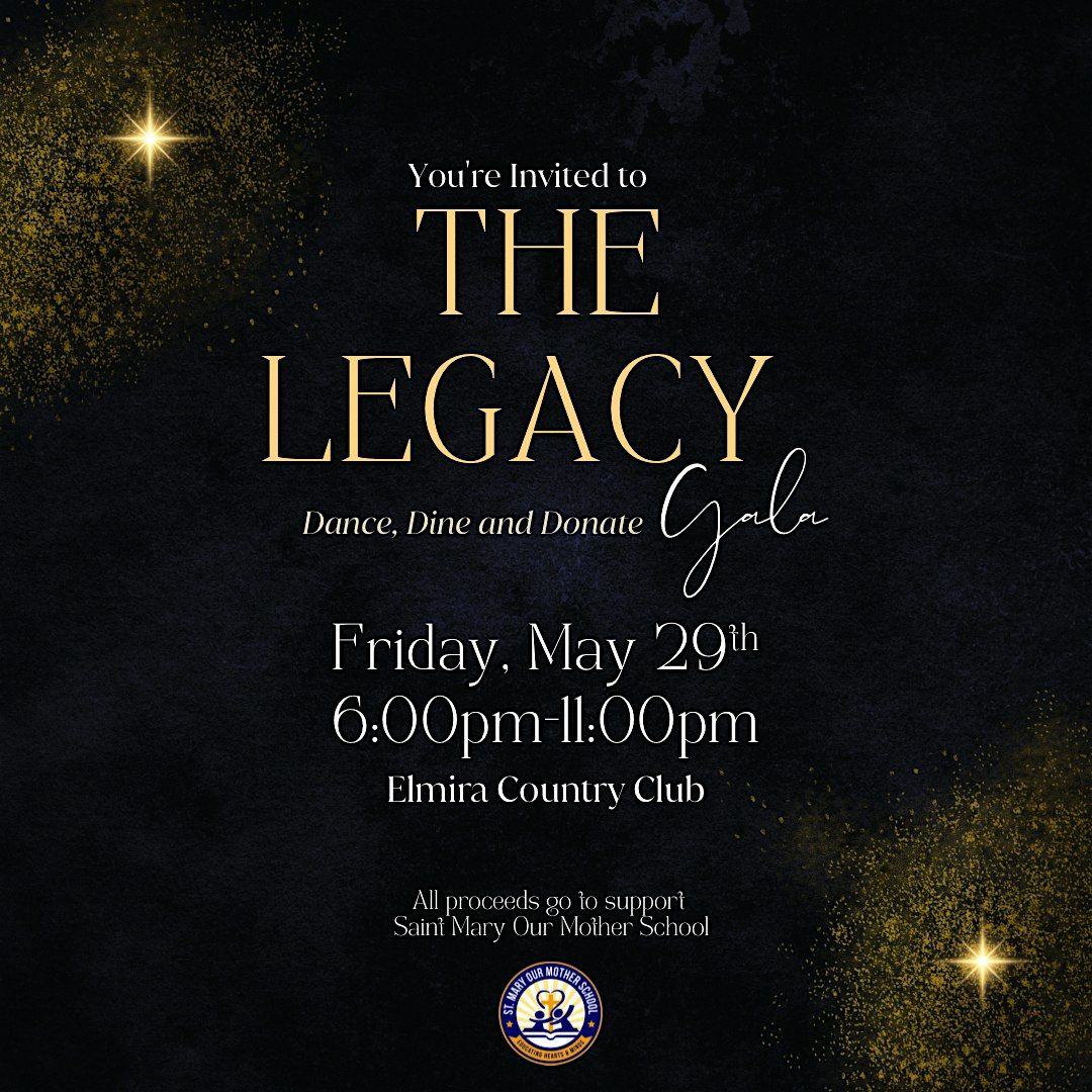 We are excited to announce the 2026 Saint Mary Our Mother School annual gala, The Legacy Gala, will be held on Friday, May 29th, 2026, 6pm-11pm at Elmira Country Club.This is a community event, all are welcome over 21+.