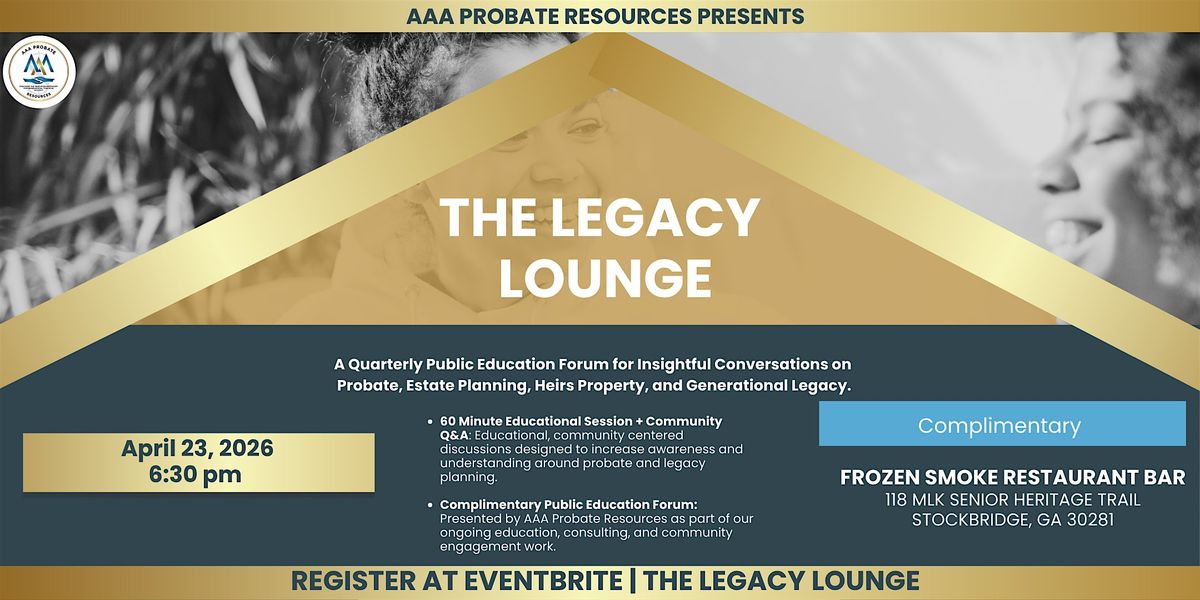 Free quarterly forum on probate, estate planning & family legacy. 60-min session + Q&A. All ages welcome. Gain clarity & confidence today!About this Event