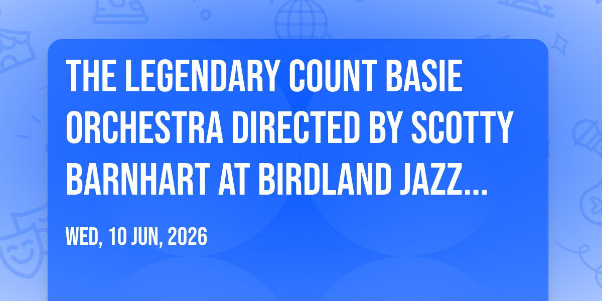 π Journey into wonder at The Legendary Count Basie Orchestra Directed by Scotty Barnhart at Birdland Jazz Club, where extraordinary experiences await around every corner! ποΈ Set against the backdrop of Birdland Jazz Club in dynamic New York, NY, this event promises to exceed all expectations. π Join us on June 10th, 2026 at 09:30 PM for a celebration that combines innovation, entertainment, and community spirit in perfect harmony. β¨ There will be an atmosphere where memories are made and stories come alive, ensuring every guest experiences something truly remarkable. π This is more than just an event; it's a journey into the extraordinary!