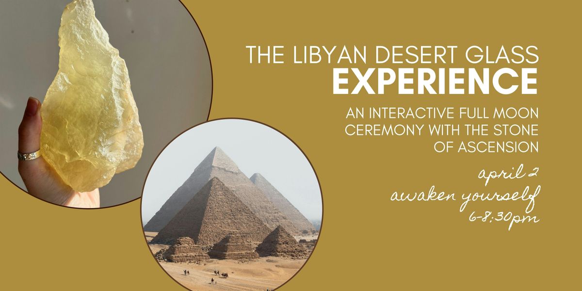 Each participant receives a Libyan Desert Glass piece valued at $40+ as a talisman of newfound strength and momentum; upgrades (pendants, rings, larger pieces) will be available for purchase at the event. Bring a journal, water, and an open heart.