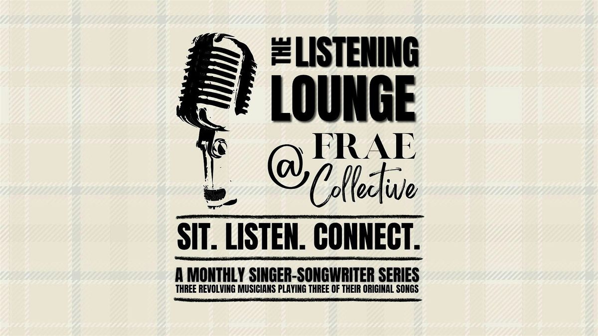 The Listening Lounge at Frae Collective is a monthly singer song-writer series. Three local musicians showcase three of their original works as host Katy Kemmick guides us through an explororation of their inspiration, technique, and process...