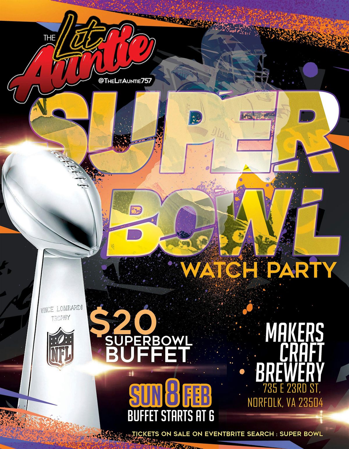 Pull up to The Lit Auntie Super Bowl Watch Party at Makers Craft Brewery