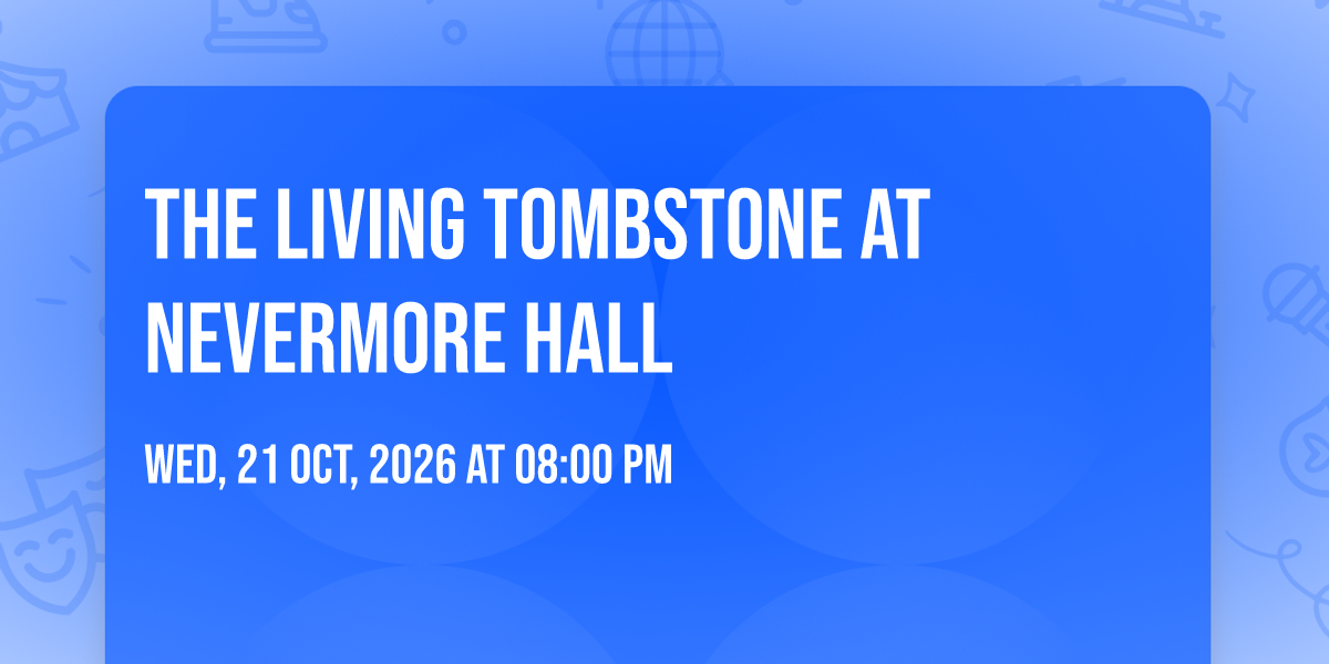 β¨ Experience the magic of The Living Tombstone at Nevermore Hall, where moments become memories that last a lifetime! ποΈ The iconic Nevermore Hall in Baltimore, MD sets the perfect stage for an unforgettable celebration on October 21st, 2026 at 08:00 PM. π It's been a curated experience that brings together the best of entertainment and innovation, creating an atmosphere of wonder and excitement. From the moment you arrive, you'll be immersed in a world where the ordinary transforms into the extraordinary. π Book early to secure your place in what promises to be an event that will be talked about for years to come!