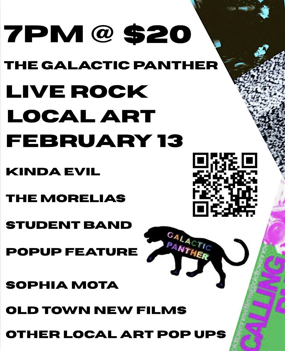 Local Rock and Art meet at The Galactic Panther on February 13th, 2026 for a show with Kinda Evil , The Morelias, Student Band + solo feat.