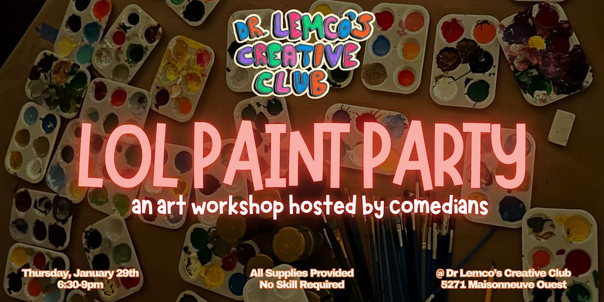 Get ready for a laugh-filled art night; Dr. Lemco’s Creative Club: The LOL Paint Party is an art workshop hosted by comedians, where creativity meets comedy and your funniest memories become masterpieces.