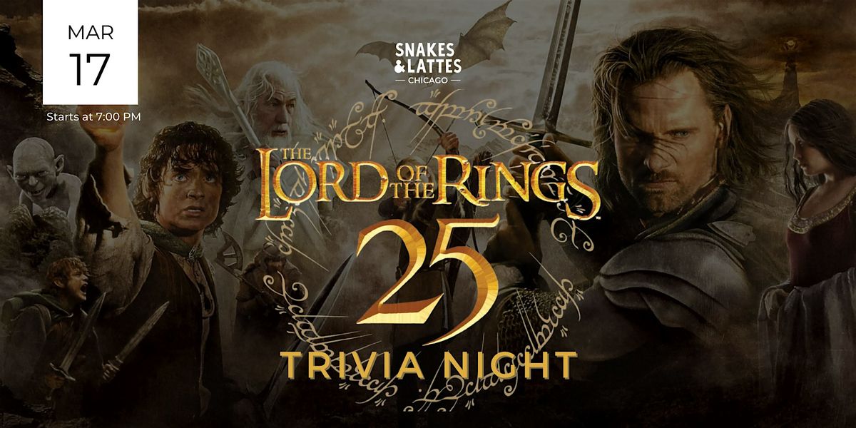 On March 17th, gather your fellowship at Snakes & Lattes Chicago to celebrate the 25th anniversary of The Lord of the Rings: The Fellowship of the Ring with a truly legendary The Lord of the Rings Trivia Night.
