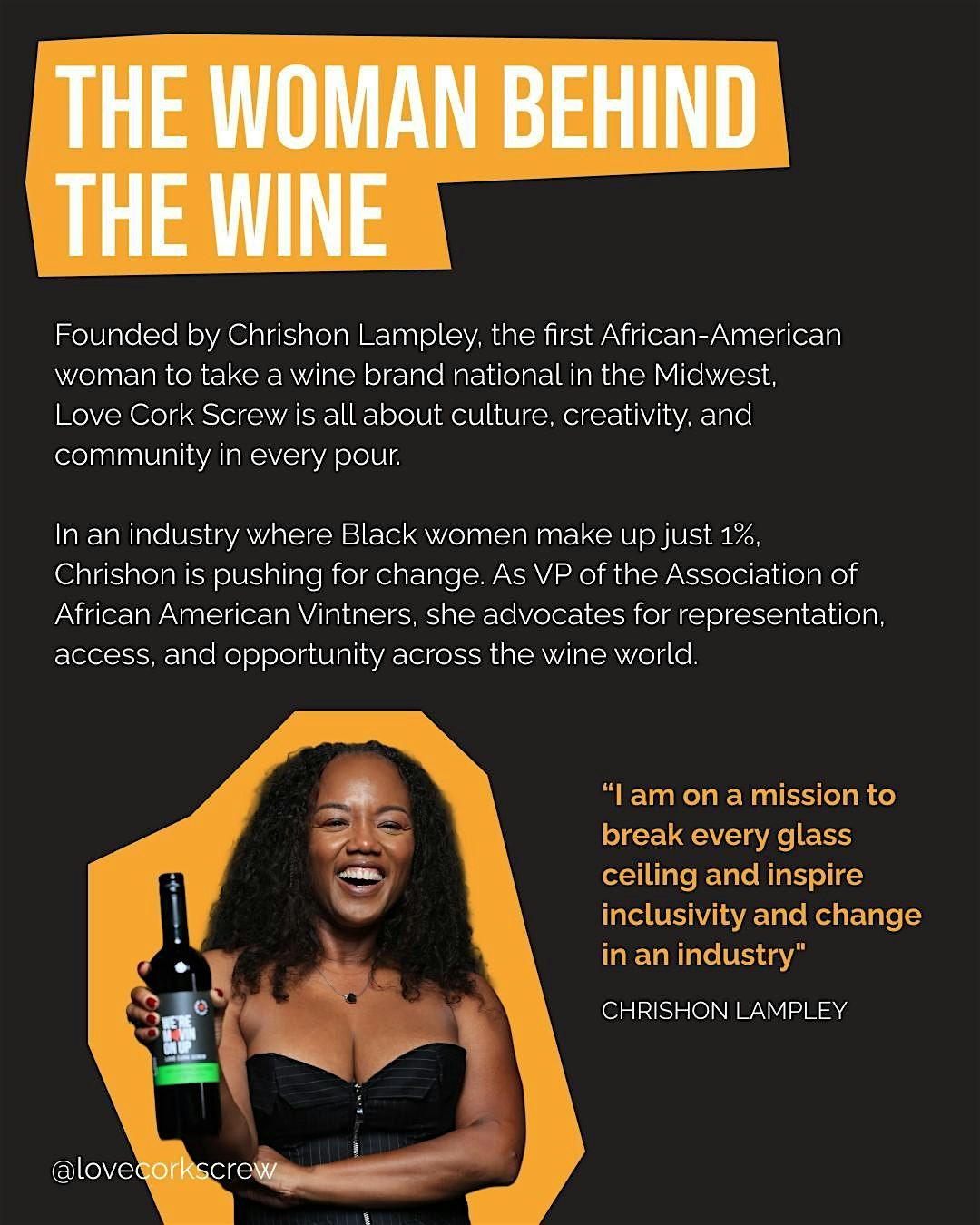After a flood destroyed her Chicago art and wine bar, Chrishon Lampley rebuilt from the ground up—transforming her passion into what is now Love Cork Screw, a nationally recognized wine brand with over 2 million bottles sold.