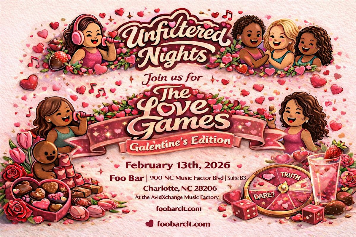 Welcome to Unfiltered Nights Charlotte Presents: Galentines Day located at Foo Bar - Bar and Arcade! Get ready for a night filled with love, laughter, and fun February 13, 2026. Dress to impress and Join us for a special event with the girls where you can enjoy great drinks, participate in an interactive game experience filled with mini games, crafts, trivia and karaoke ! Come ready to participate and have fun! Don't miss out on this opportunity to spread love, make friends and have a genuine fun time . Mark your calendars and come celebrate love with us!