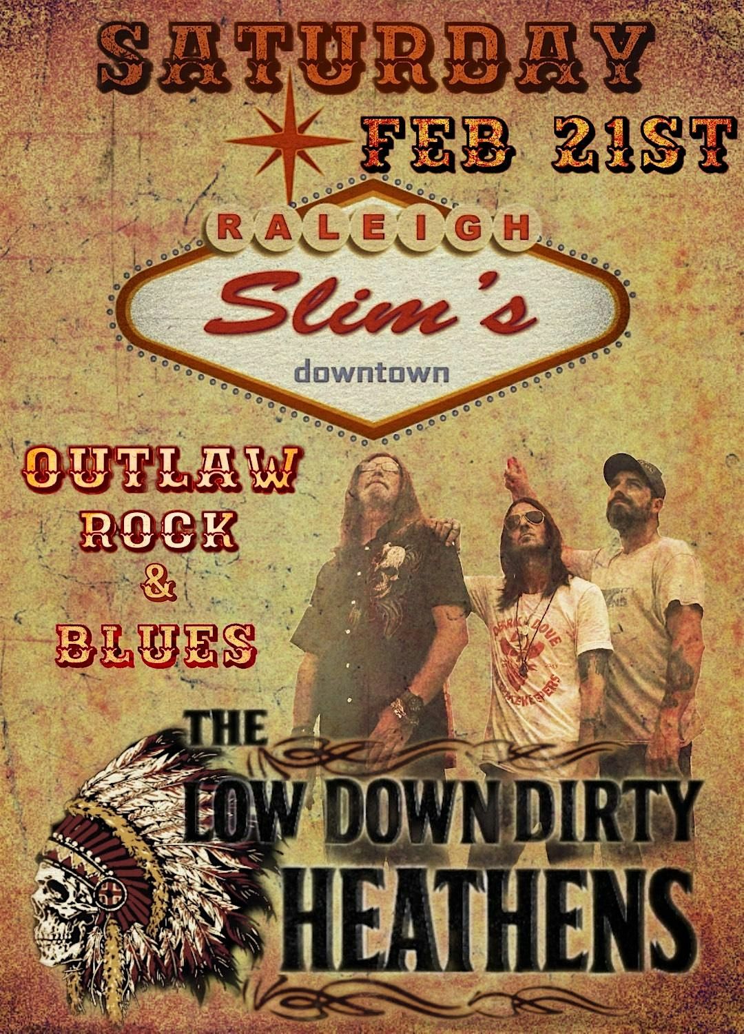 The Low Down Dirty Heathens are playing at Slim’s on February 21st at 9pm! This NC trio is known for their outlaw rock and blues jams.