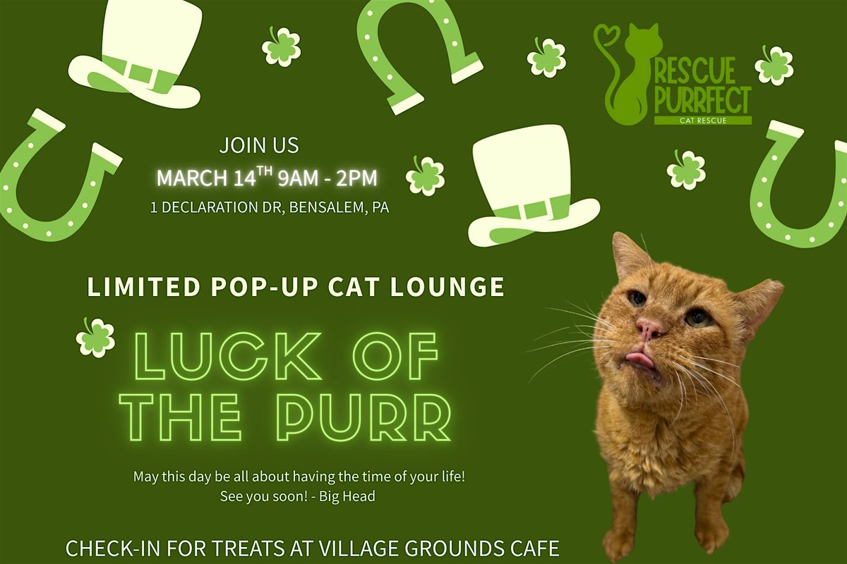 Luck of the Purr Pop-Up Cat Lounge is a limited, small-group cat “café-style” experience at Rescue Purrfect