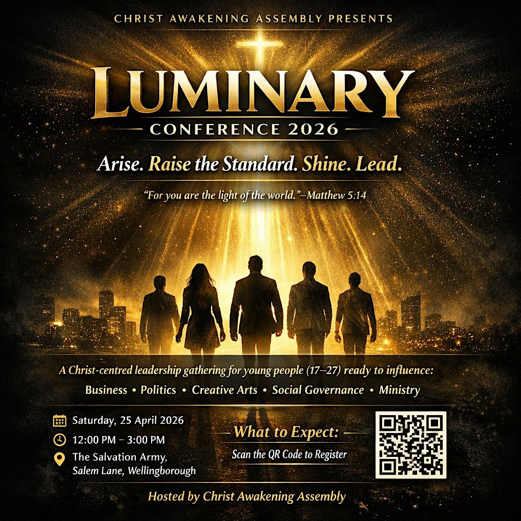 The Luminary Conference 2026, hosted by Christ Awakening Assembly, is a transformational leadership gathering for young people aged 17–27 who are ready to lead with conviction, clarity, and courage.