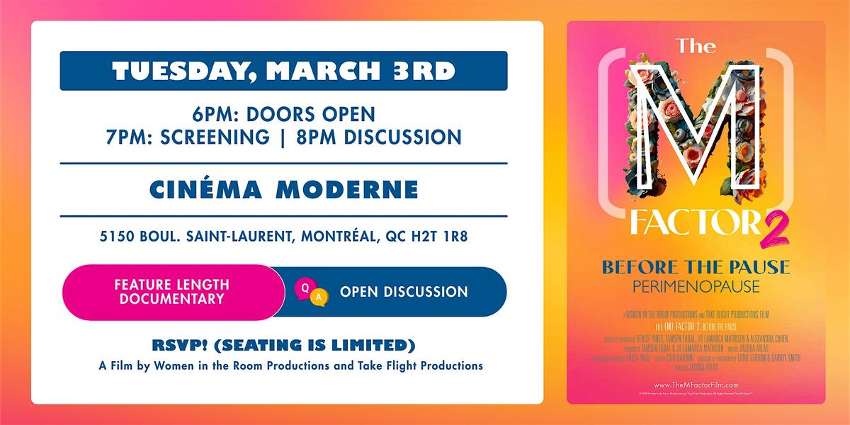 Dignité Mensuelle est heureuse de vous inviter à vous joindre à nous pour visionner The (M) Factor 2: Before the Pause : Perimenopause.