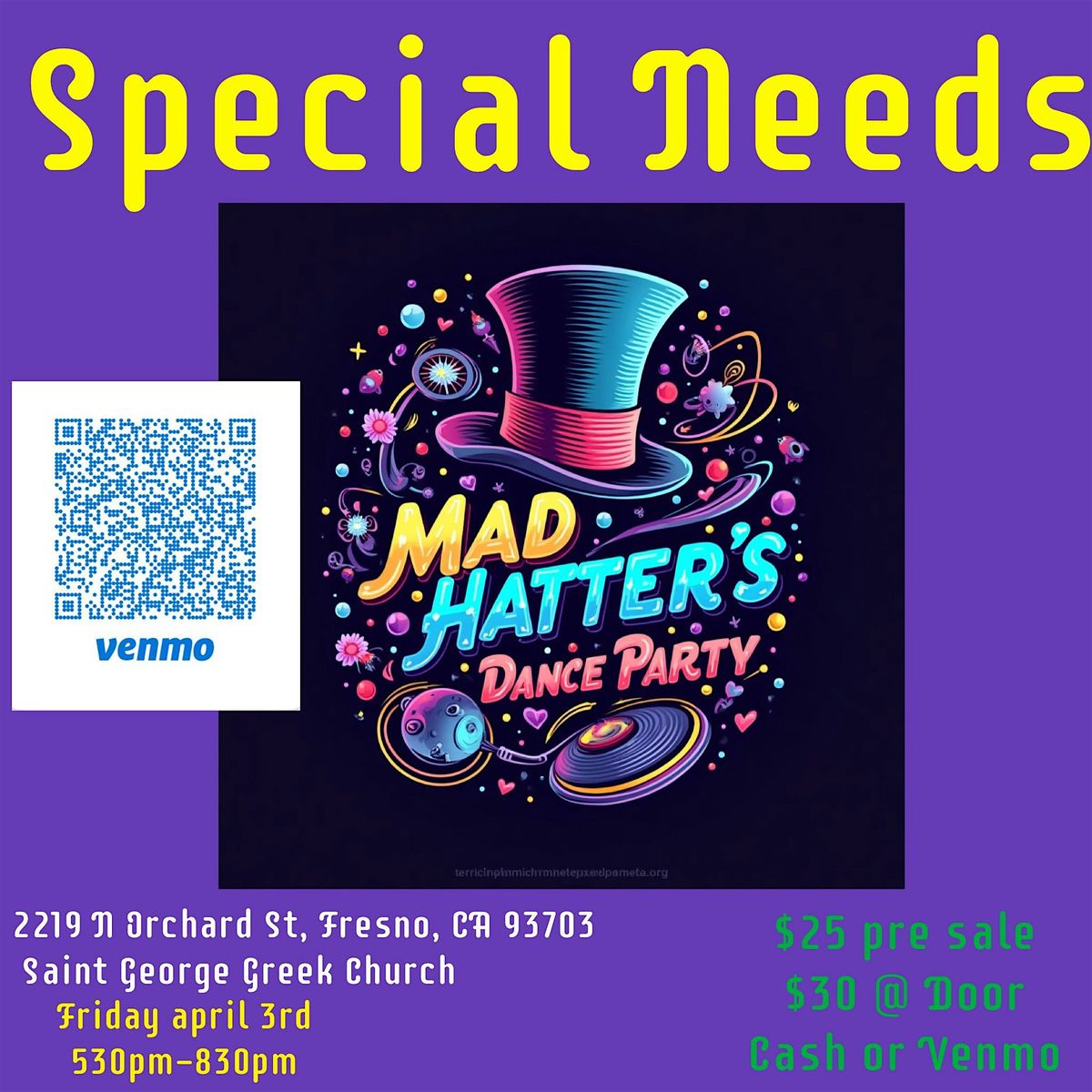 Get ready for a whimsical and fun-filled day! The Mad Hatter Party is the perfect chance to dive into a world of quirky hats, catchy tunes, and non-stop laughter. Join us in person for a wild ride inspired by your favorite topsy-turvy tea party. Don’t forget to bring your most creative hat and your best party vibes. It's gonna be a blast! proceeds go to our local special needs population to help with athletics, food, clothing, and more.