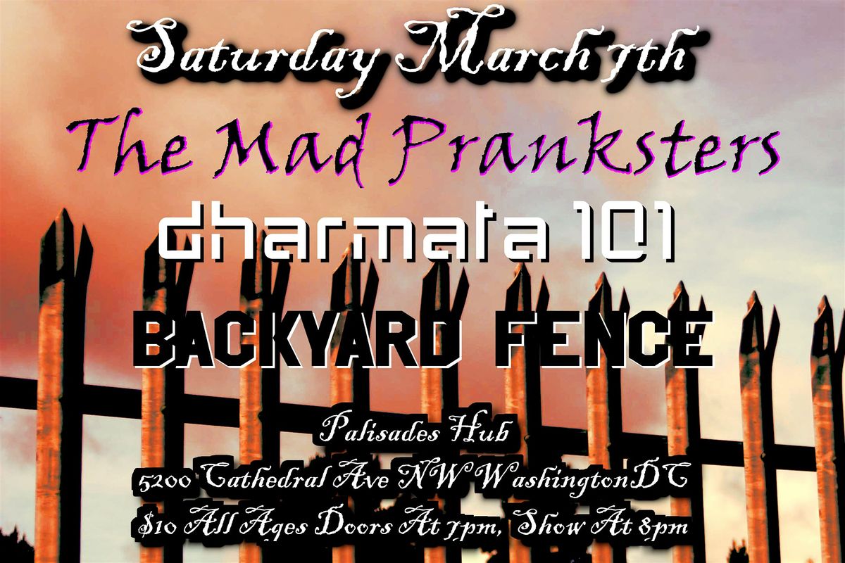Come to the palisades Hub in DC for a night of Deathrock and electronic rock with The Mad Pranksters, Dharmata101, and Backyard Fence.