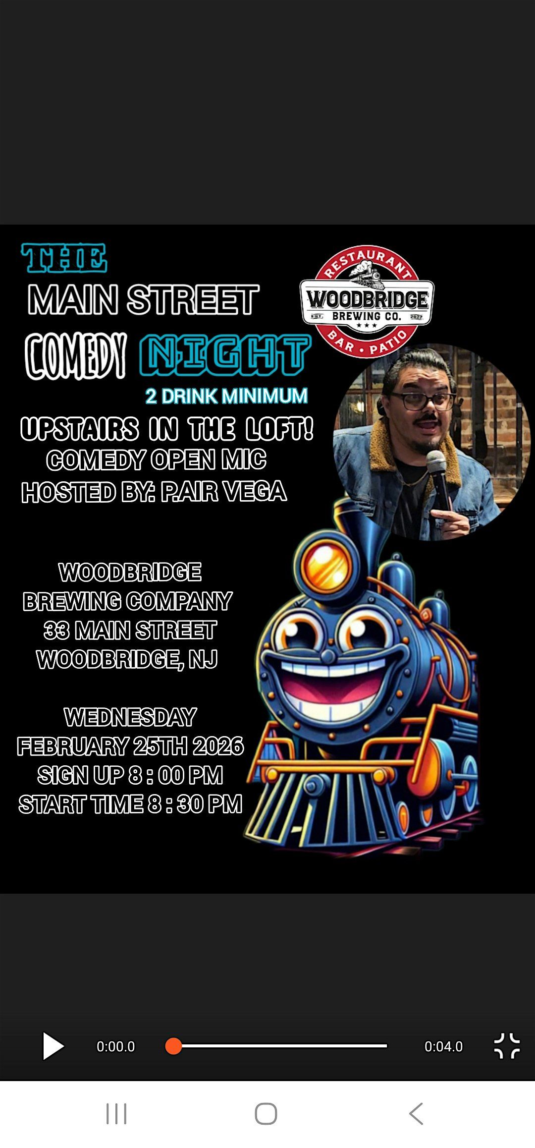 Fun night out enjoying and supporting wonderful New Jersey comedians . And an opportunity to purchase and enjoy some good food and beverages