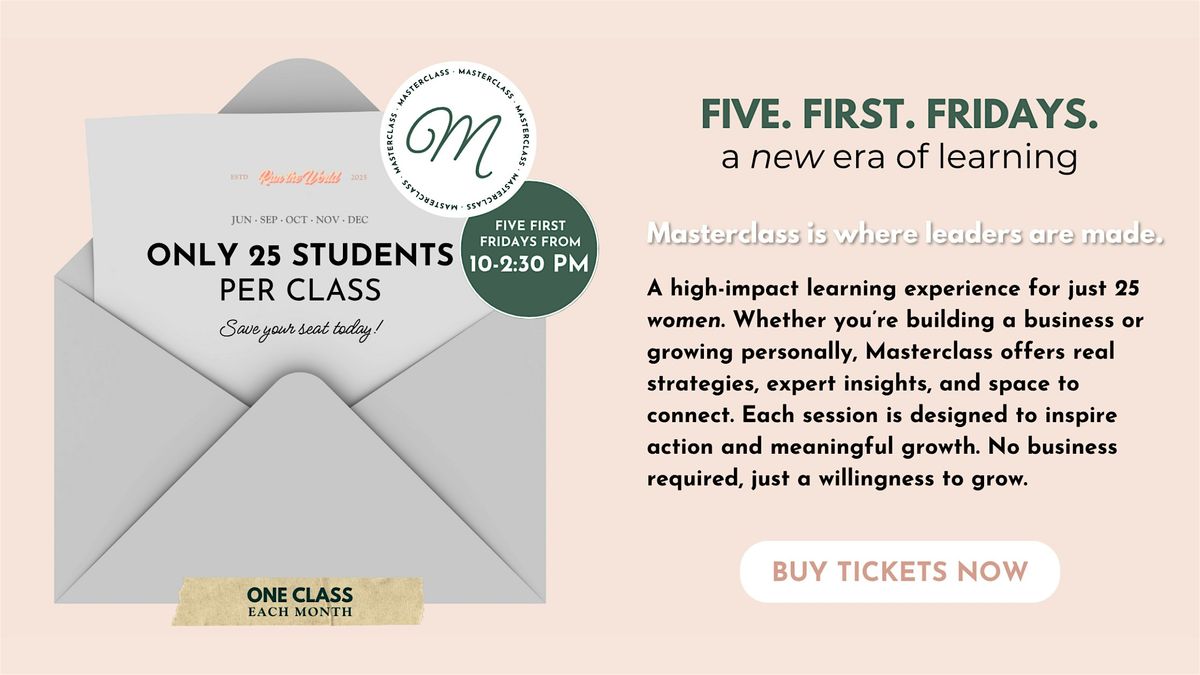 The Masterclass Series is a high-impact learning experience for just 25 women. Whether you’re building a business or growing personally, Masterclass offers real strategies, expert insights, and space to connect. Each session is designed to inspire action and meaningful growth. No business required, just a willingness to grow.