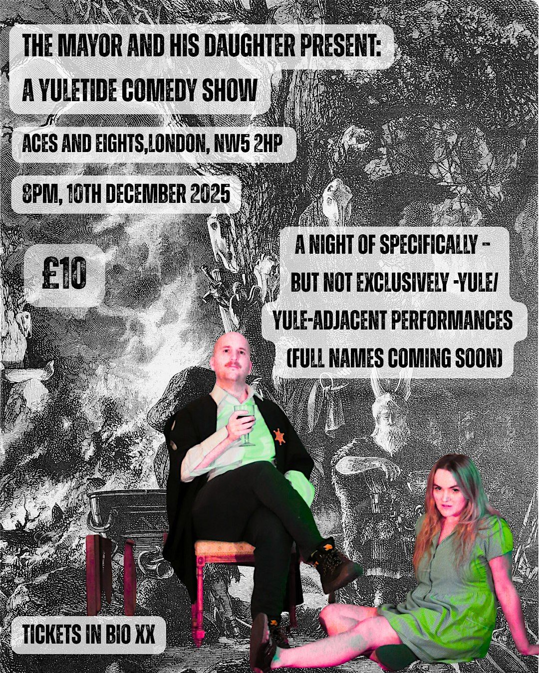 The Mayor and His Daughter have curated a lineup of excellent comedians who will no doubt have interesting Yule material. Please come along and start the Yule season with some very good comedy.