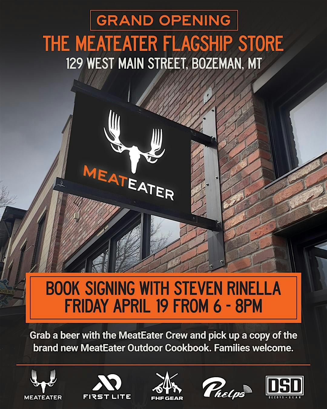 To celebrate our new spot come hang out with the MeatEater Crew and pick up a copy of Steve's brand new book, The MeatEater Outdoor Cookbook: Wild Game Recipes for the Grill, Smoker, Campstove, and Campfire Friday April 19th, which Steve Rinella will be signing from 6-8pm.