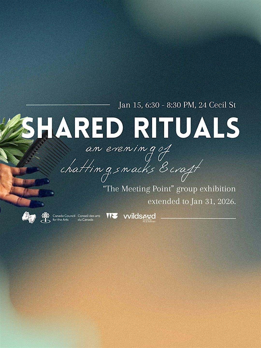 On behalf of our co-curators and ehibiting artists, we extend heartfelt gratitude to all who have engaged with "The Meeting Point" to date - a group exhibition exploring spaces and formations of complexity that make up Black diasporic life. Opening on Nuit Blanche 2025, the group exhibition has been extended to Saturday, January 31, 2026. Ahead of its close, join Ayat Salih, Ehiko Odeh and Racquel Rowe for an artist talk and hands-on activities on Thursday, January 15. Both components will explore themes of intimacy, gendered expression and diasporic translations. In-person capacity is limited and food will be provided.