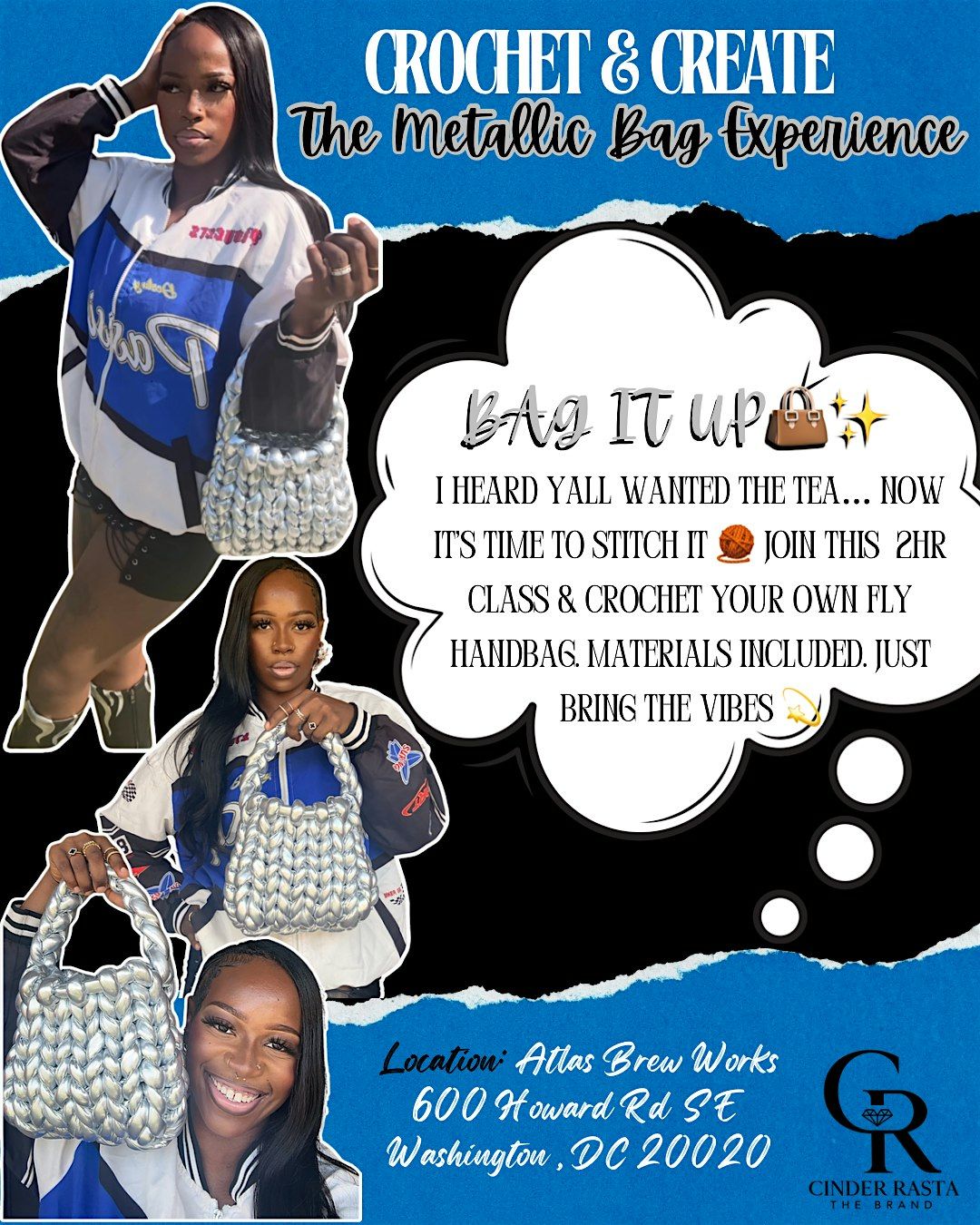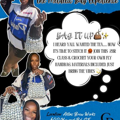 Join us for a fun and relaxing Beginner Finger Crochet Workshop where you’ll learn the basics of crocheting using your fingers—no hooks required! In this hands-on class, participants will be guided step-by-step through foundational finger crochet techniques while starting their very own stylish metallic crochet purse.