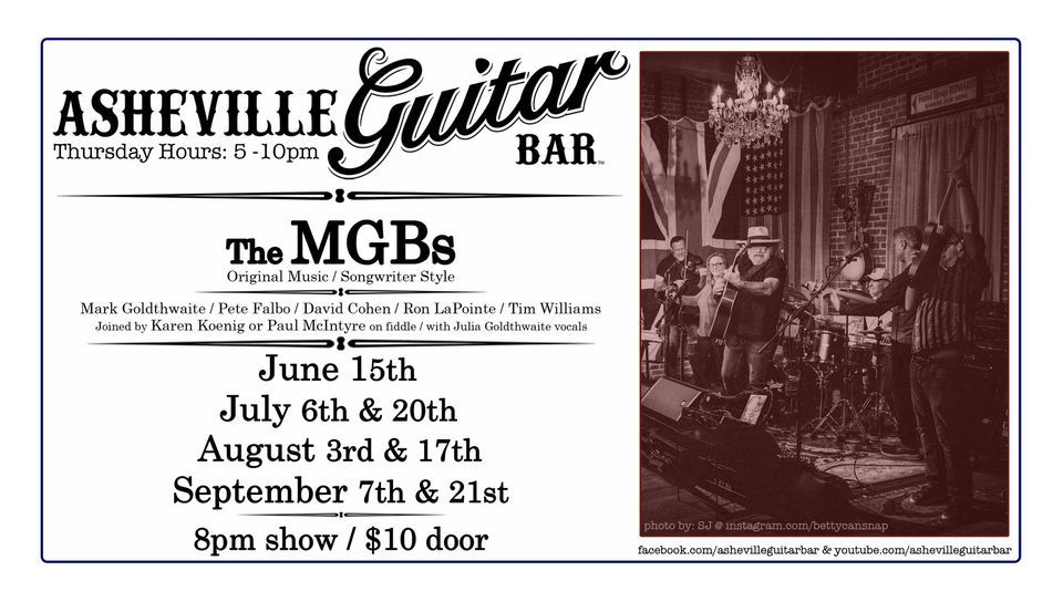 Join Mark as he shares his passion for songwriting and playing his originals with band member friends, Tim Williams on guitar, vocals, and songwriting, Pete Falbo on bass, Ron LaPointe on drums, Mark’s wife Julia doing back up vocals and songwriting, with Special Guests each evening. It’s like you’re experiencing a house concert in our living room. Come share a local Asheville favorite.