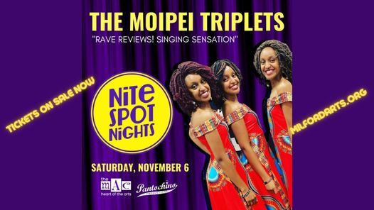 The MAC (Milford Arts Council) and Pantochino Productions announce a very special Nite Spot Night event on November 6th at 8pm. The MAC, located at 40 Railroad Avenue South in downtown Milford CT, will be hosting The Moipei Triplets. The Moipei Triplets are from Nairobi, Kenya and currently reside in the U.S. Their musical journey began in Kenya Music Festival competitions with their sister Serafina. They were awarded 1st place honors for four consecutive years.