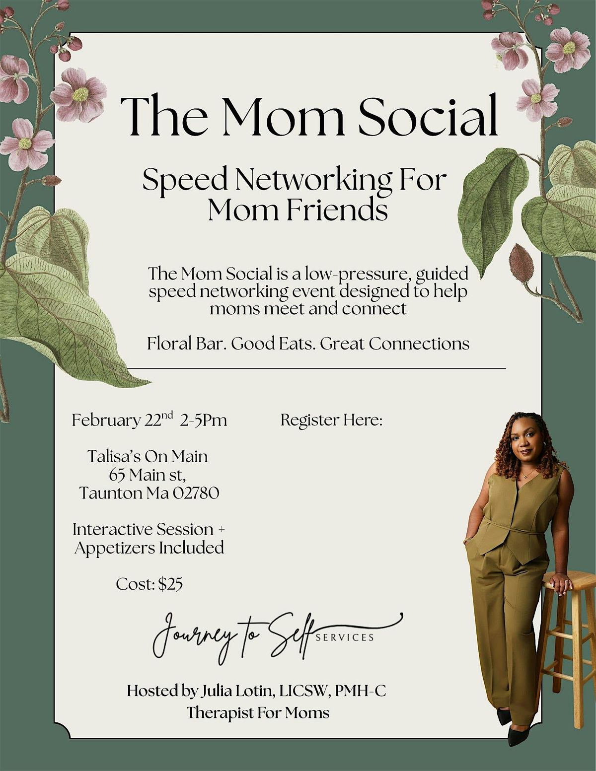 The Mom Social is a low-pressure, guided speed networking event designed to help moms meet and connect in a warm, welcoming environment.