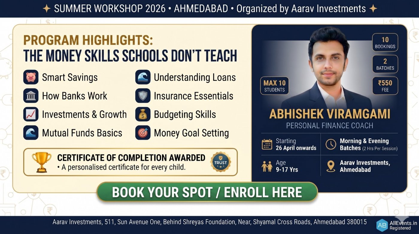 #SummerCampAhmedabad #KidsWorkshop #FinancialLiteracy #Parenting #AhmedabadEvents #TeenActivities #PersonalFinance #Summer2026 #Education