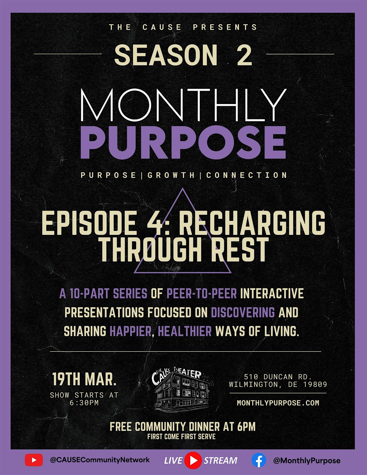 #TheMonthlyPurpose #TheCAUSE #WilmingtonDE #CommunityEvent #LiveStream #rest #sleep #health