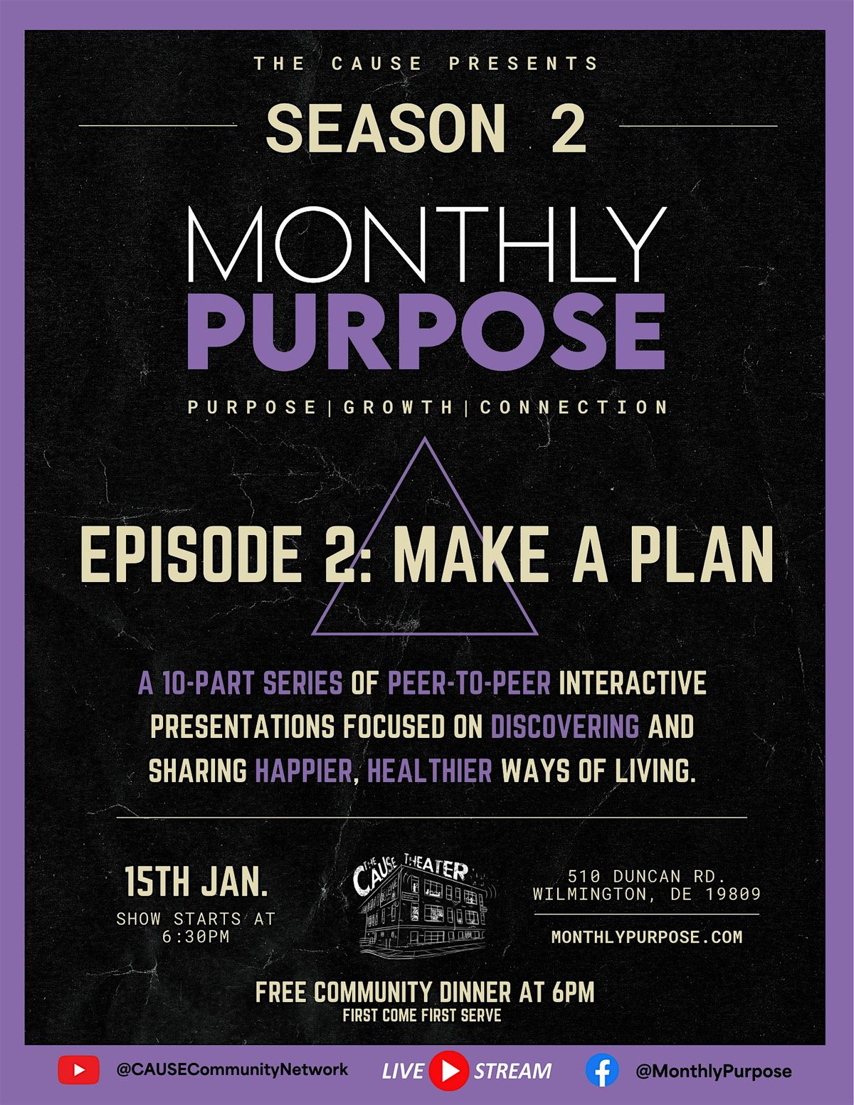Join us Thursday, January 15th, for our second live show of Season 2! The subject: “Making a Plan” - a night centered around making plans and how planning can be a tool of evolving into the best version of yourself.Community Dinner at 6 PM (for first 50 attendees)