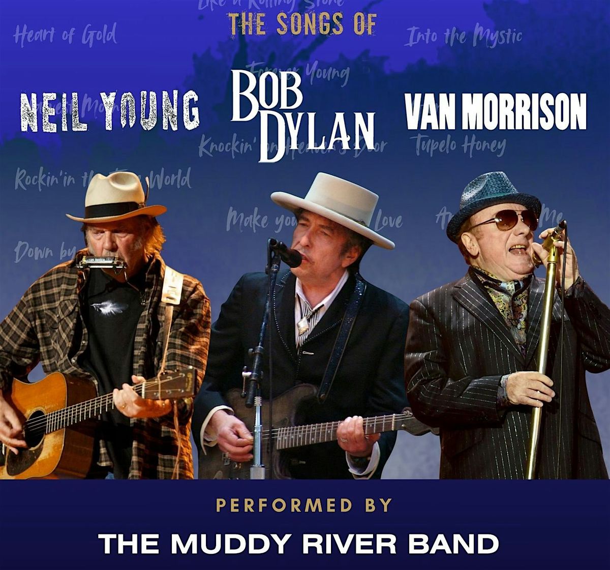 Step back in time and experience the magic of three of music’s greatest legends; Neil Young, Bob Dylan and Van Morrison, performed by the fantastic Muddy River Band. This talented group of musicians bring to life the unforgettable melodies, poignant lyrics, and electrifying performances that have echoed through the lives of generations of music lovers.