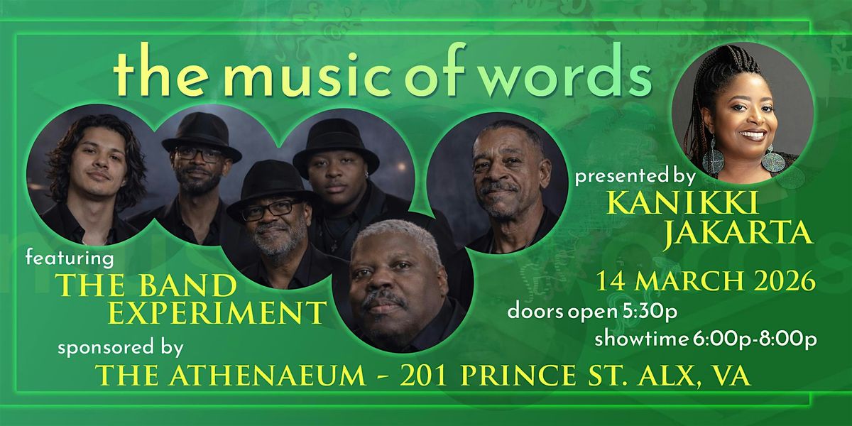 KaNikki Jakarta presents THE MUSIC OF WORDS featuring THE BAND EXPERIMENT. Sponsored by The Athenaeum. Join us for a night of soulful music and fulfilling poetry. Arrive when the doors open to enjoy complimentary appetizers and beverages. Witness what transpires when poetry and music collide!