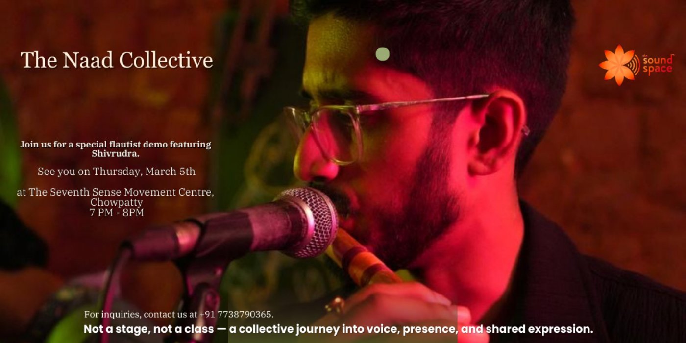 On Wednesday, March 5, from 7 PM onwards, immerse yourself in an intimate musical gathering featuring Flautist Shivrudra, whose evocative flute will guide listeners through a deeply meditative and expressive soundscape.