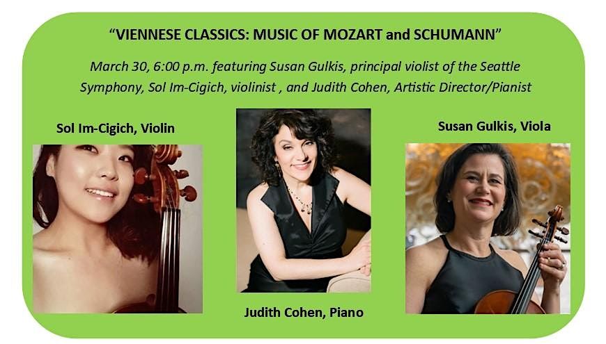 The Nancy Bell Evans Memorial Concert Series proudly presents, "Viennese Classics" Join us for an evening of beautiful classics from Mozart and Schumann at the Washington State Executive Mansion in Olympia, WA. Look forward to a relaxing evening as this talented trio entertains you in the mansion ballroom. Enjoy light appetizers and Washington wines just prior to the performance.