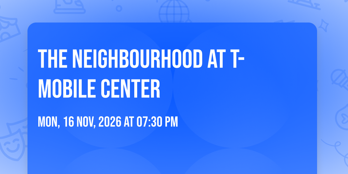 π Welcome to The Neighbourhood at T-Mobile Center, where dreams come alive and possibilities are endless! ποΈ Join us at T-Mobile Center in the heart of Kansas City, MO for an event that defies expectations. π On November 16th, 2026 at 07:00 PM, be part of something truly extraordinary as we bring together innovation, entertainment, and pure magic. β¨ Every aspect has been carefully designed to ensure an unforgettable experience for all our guests. Whether you're seeking adventure, inspiration, or simply a break from the ordinary, this event promises to deliver beyond your wildest dreams. π Prepare for a journey into the extraordinary!
