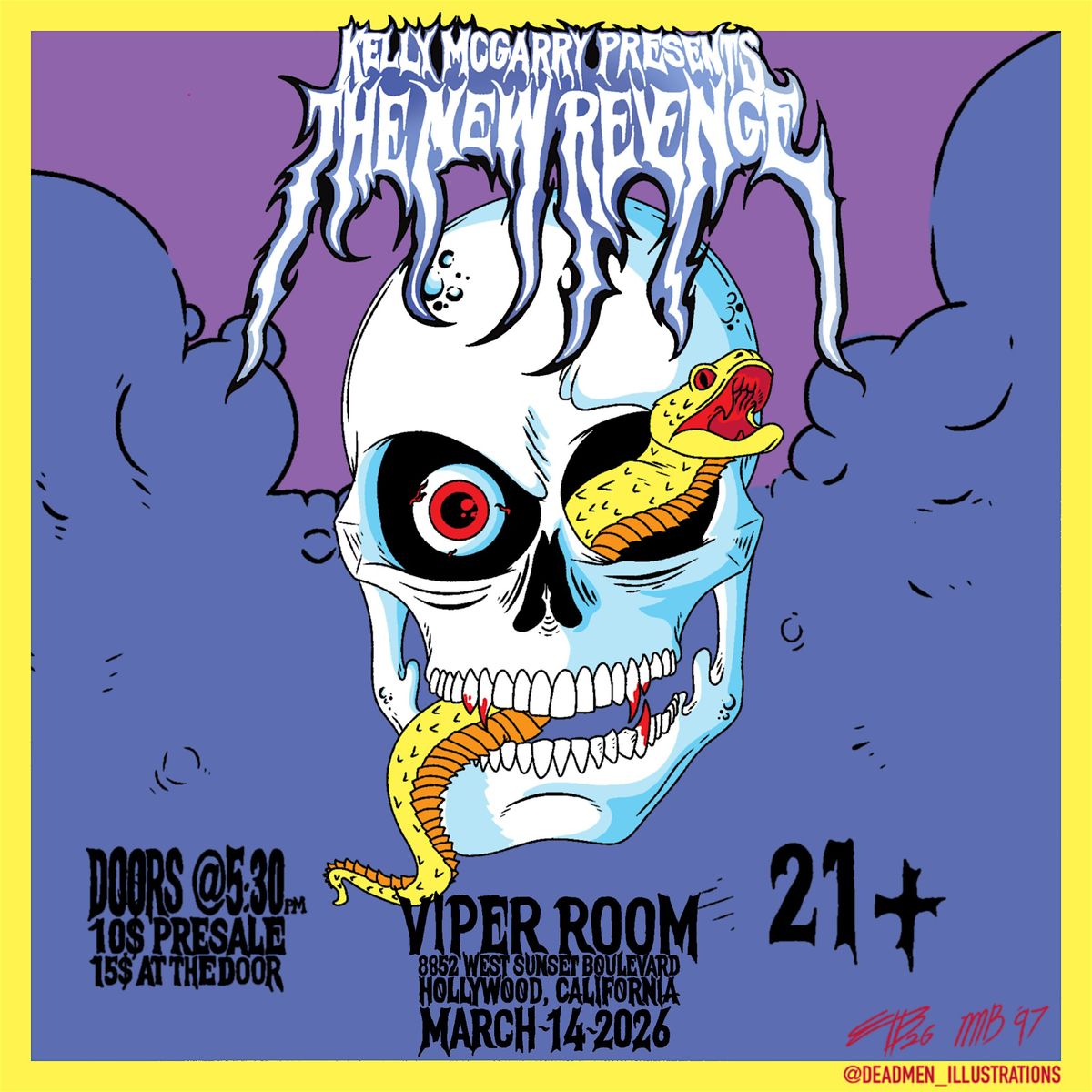 Kelly McGarry presents The New Revenge on tour at the Viper Room—cinematic heaviness, raw energy, one night in Hollywood. March 14. 21+