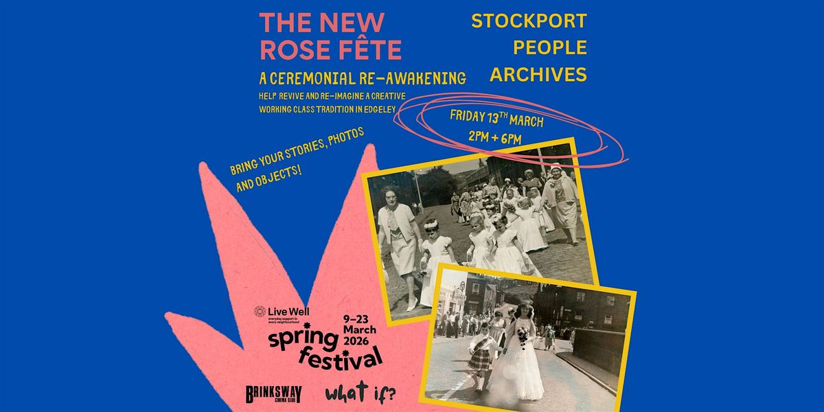 The New Rose Fete: A Ceremonial Reawakening is inviting members of the local Stockport community to come down to one of our drop-in sessions at What if? on Friday 13th March to share their memories, photographs and stories as part of a phased community programme of remembering Stockport and some of the traditions of years gone by.