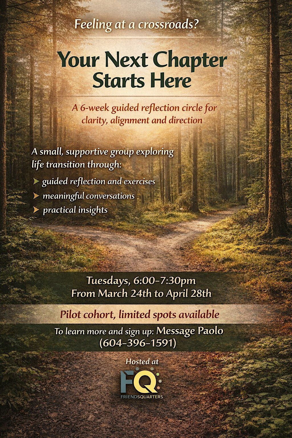 The Next Chapter Circle is a small, guided group for people navigating life transitions, seeking clarity and alignment, or simply wanting to move forward with more intention.