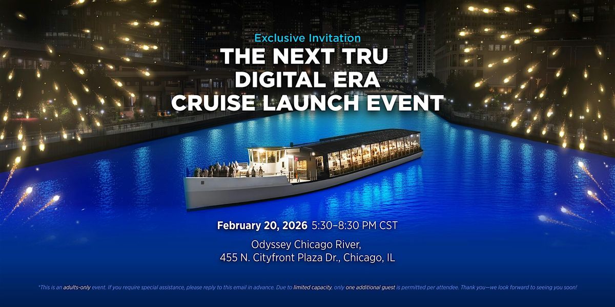 Welcome to The Next TRU Digital Era Cruise Launch Event! Join us at 445 N Cityfront Plaza Dr (NBC Tower) on February 20, 2026, at 5:30 AM (Central Time). Please meet us at the shuttle pick-up area at the Hyatt Regency Chicago by 5:15 AM so we can board the boat on time. 🎉 Get ready to embark on a journey of innovation and excitement!