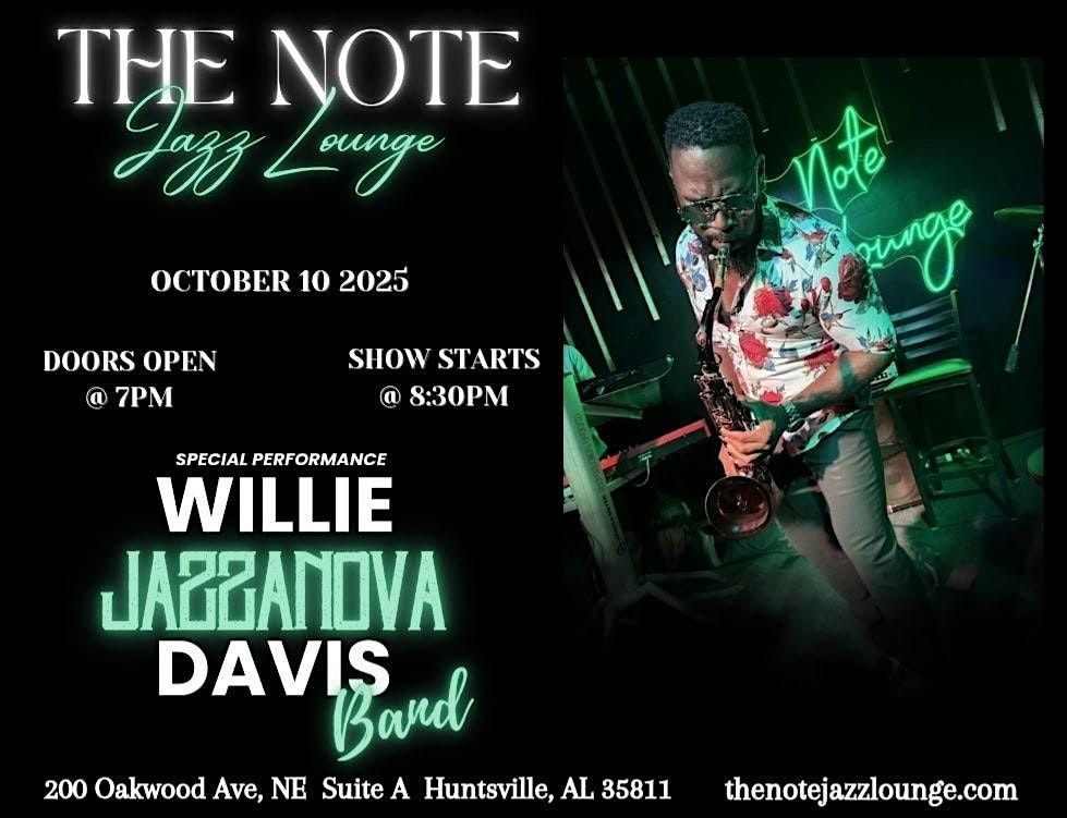 Join us at The Note for a night of smooth grooves, soulful rhythms, and electrifying energy as we welcome Willie "Jazzanova" Davis.
