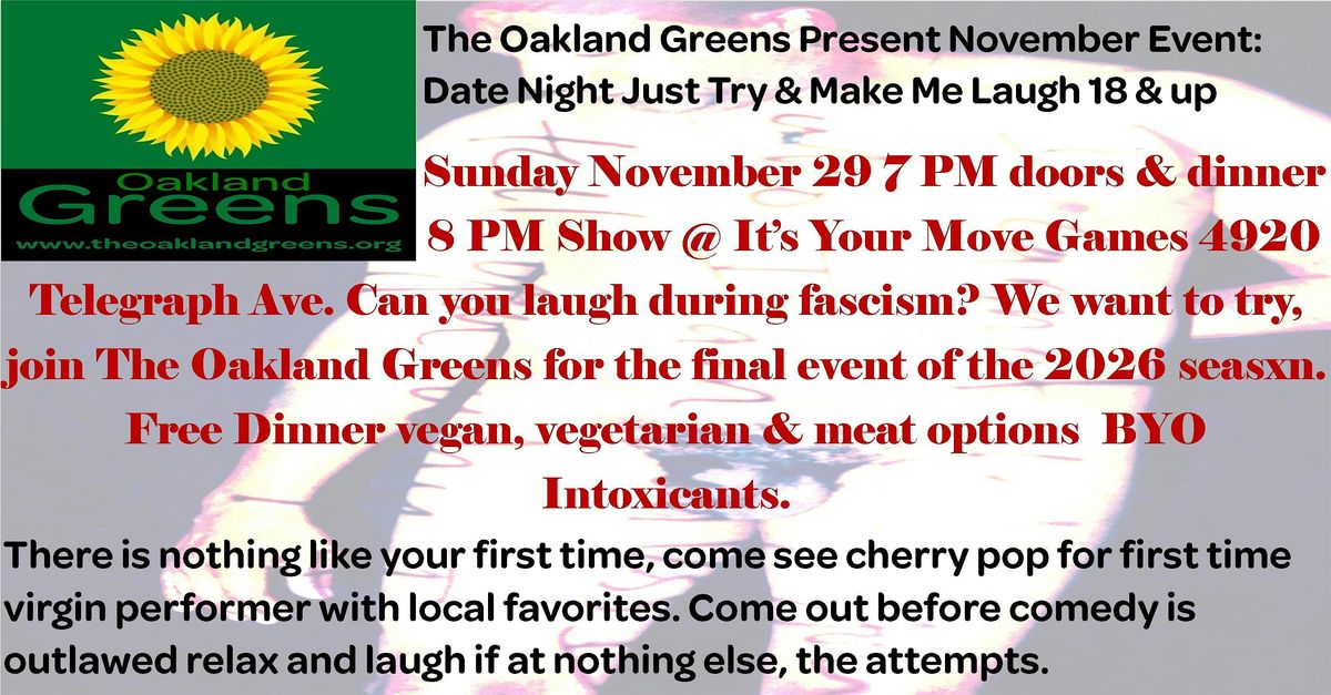 The Oakland Greens Present: Just Try And Make Me Laugh Free Dinner & A Show