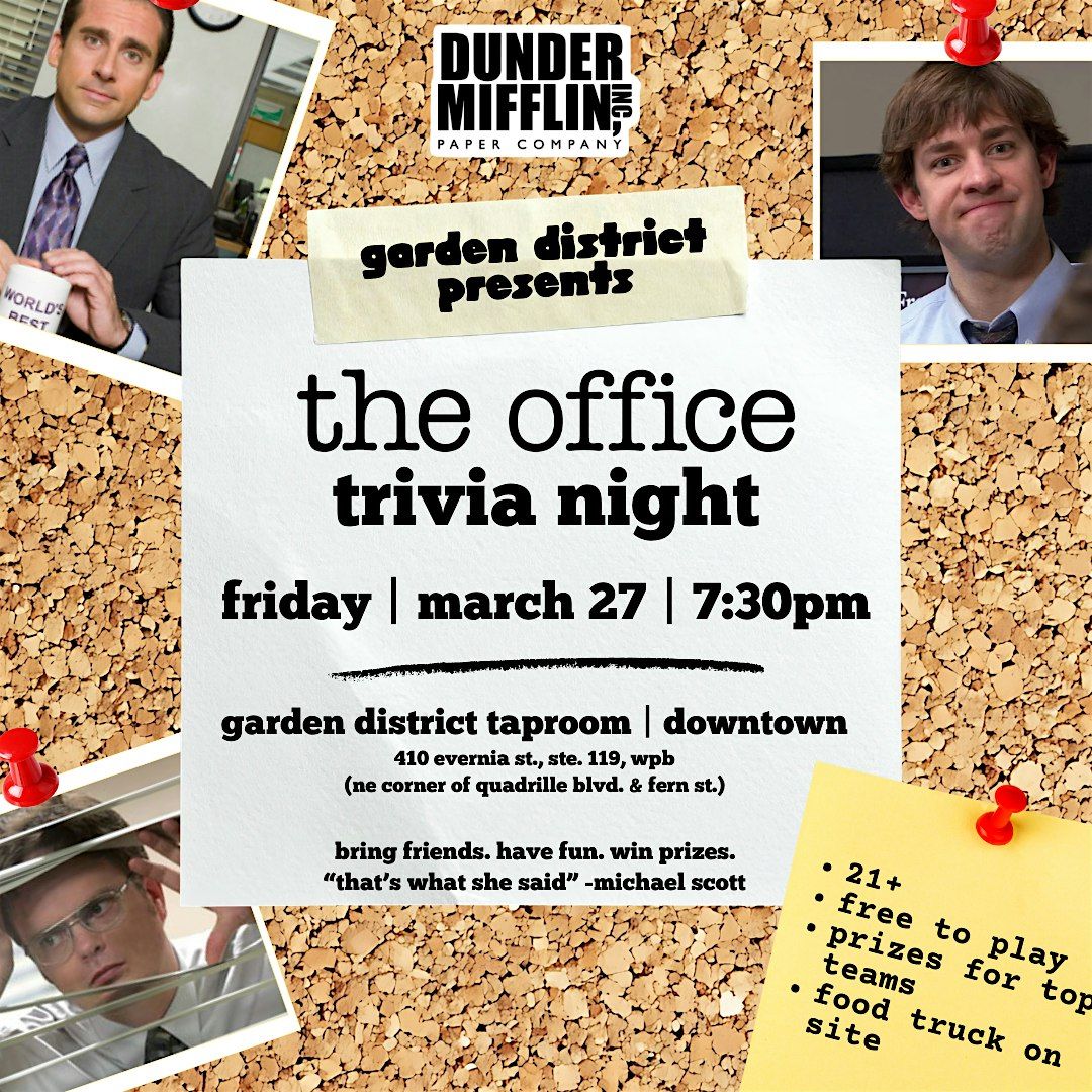Test your knowledge of The Office! Join us on March 27th at 7:30pm for Trivia Night at Garden District. Awesome prizes to be won and special beers on tap!